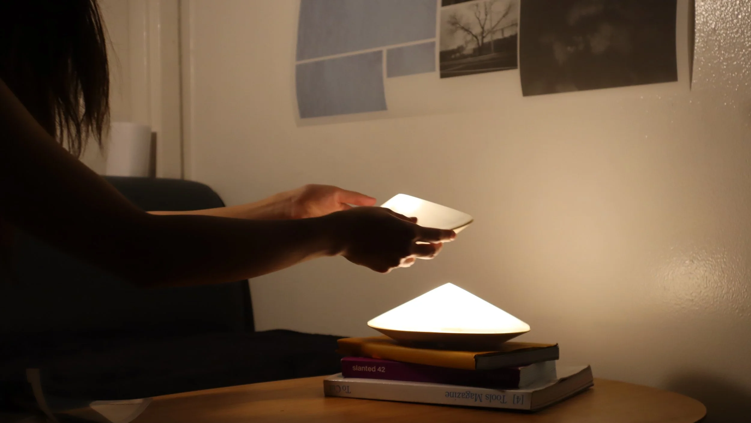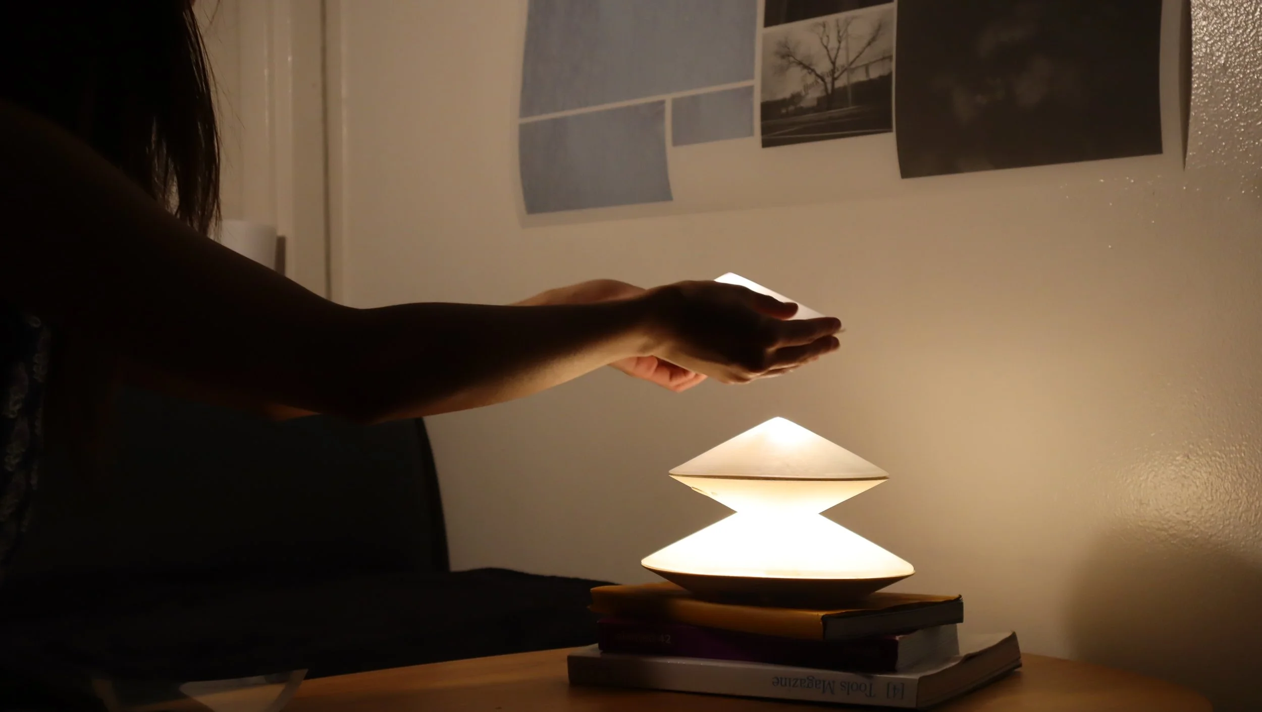 Lumi is a modular lamp system for shared living. Users can take a cone shaped light module for personal use and return it to the dock to recharge. The system uses warm, candle inspired light to signal presence and turns the repeated act of taking and returning into a quiet shared ritual that supports awareness and connection at home