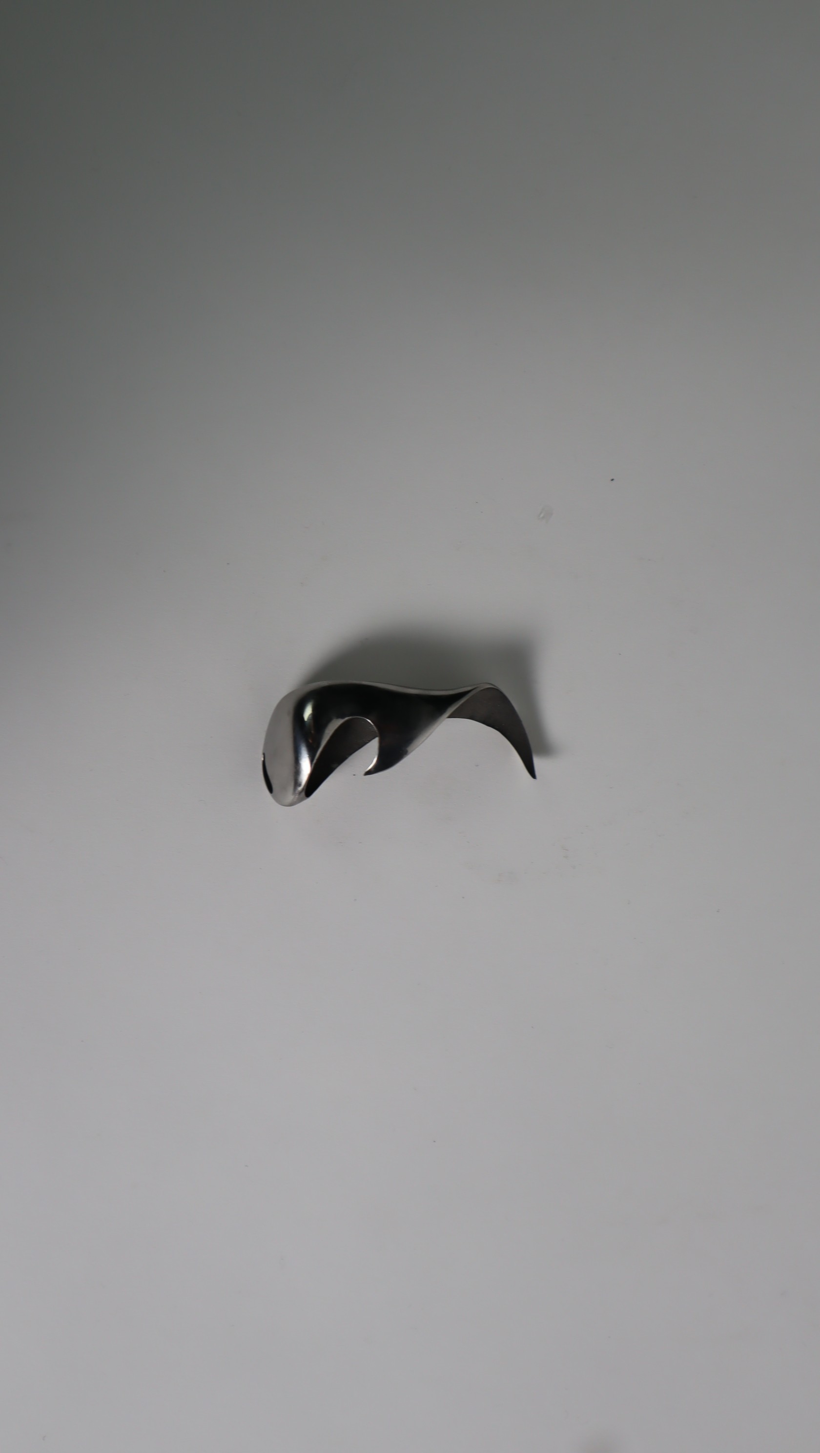 The final prototype was 3D printed in stainless steel for strength, durability, and resistance to outdoor use. The lower contour provides a natural resting point that stabilizes the hand during multiple ignitions. A small keyhole was added for keychains or bag attachment, improving portability.