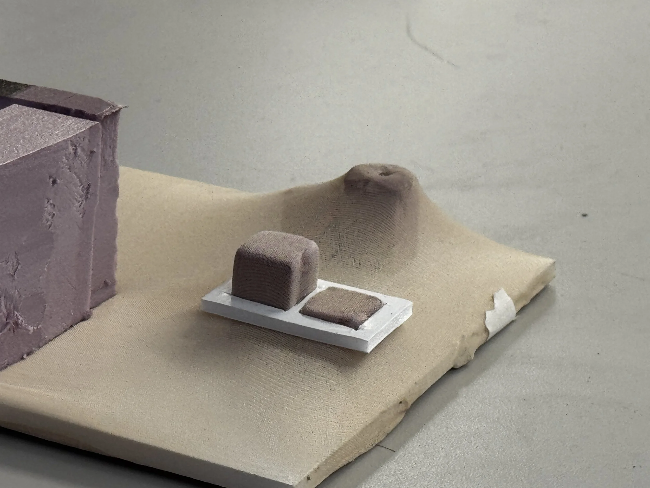 In UNDUCK, the ground is covered by a stretchable fabric skin. Underneath is a network of inflatable chambers. When a visitor arrives, they inflate their own seat and table. The flat surface slowly rises, forming a soft hill that becomes their temporary “영역” (territory). As more users inflate their zones, the cafes topography changes everytime. Raised areas redirect circulation, inviting people to walk around these soft volumes instead of through them. Boundaries are co-created. They are not fixed furniture plans, but the result of many small actions happening over time.